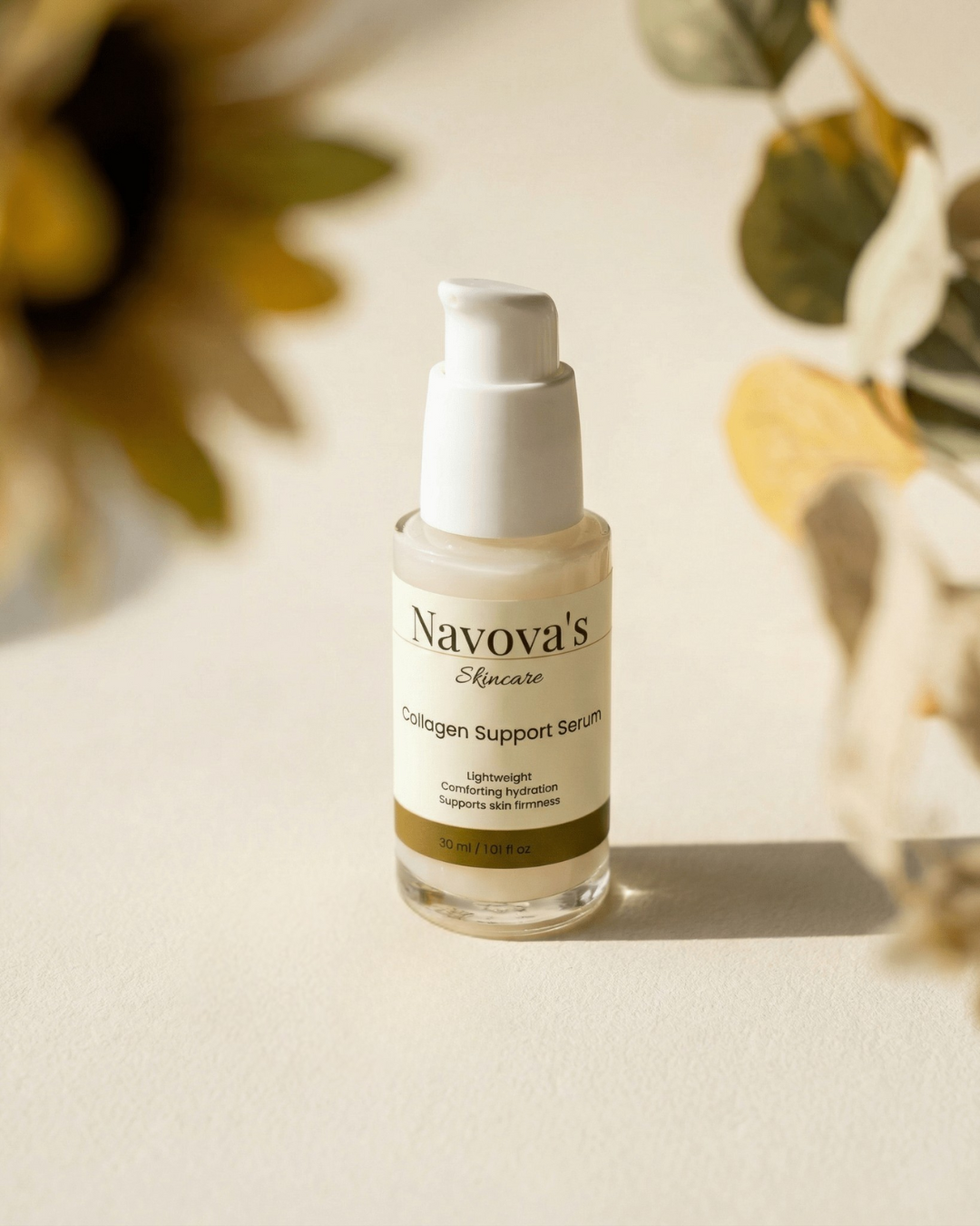 Offer your skin daily support with Navova’s Collagen Support Serum. Formulated to hydrate, comfort, and help skin feel smoother and more plump, this lightweight serum fits seamlessly into your routine while respecting your skin’s natural balance.